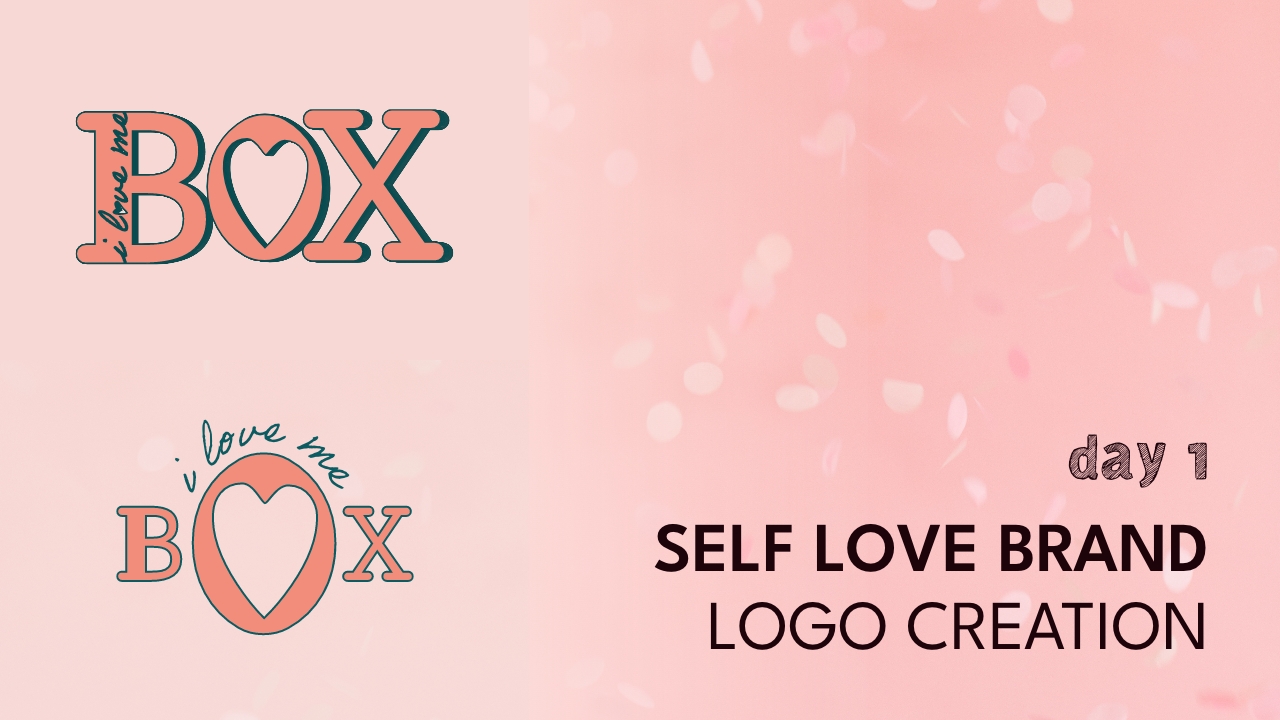 I didn’t sketch this logo out in my sketch pad because I had a very clear idea of what I wanted it to look like. I wanted a typeface with rounded corners, which I created by transforming another typeface, “Rockwell”. I also knew that I wanted the “I love me” portion to be hidden within the “B” in box. A lot of the additional elements came to mind as I worked, but that is the beauty of design. New things come to you as you are working and practicing your craft. It’s amazing!