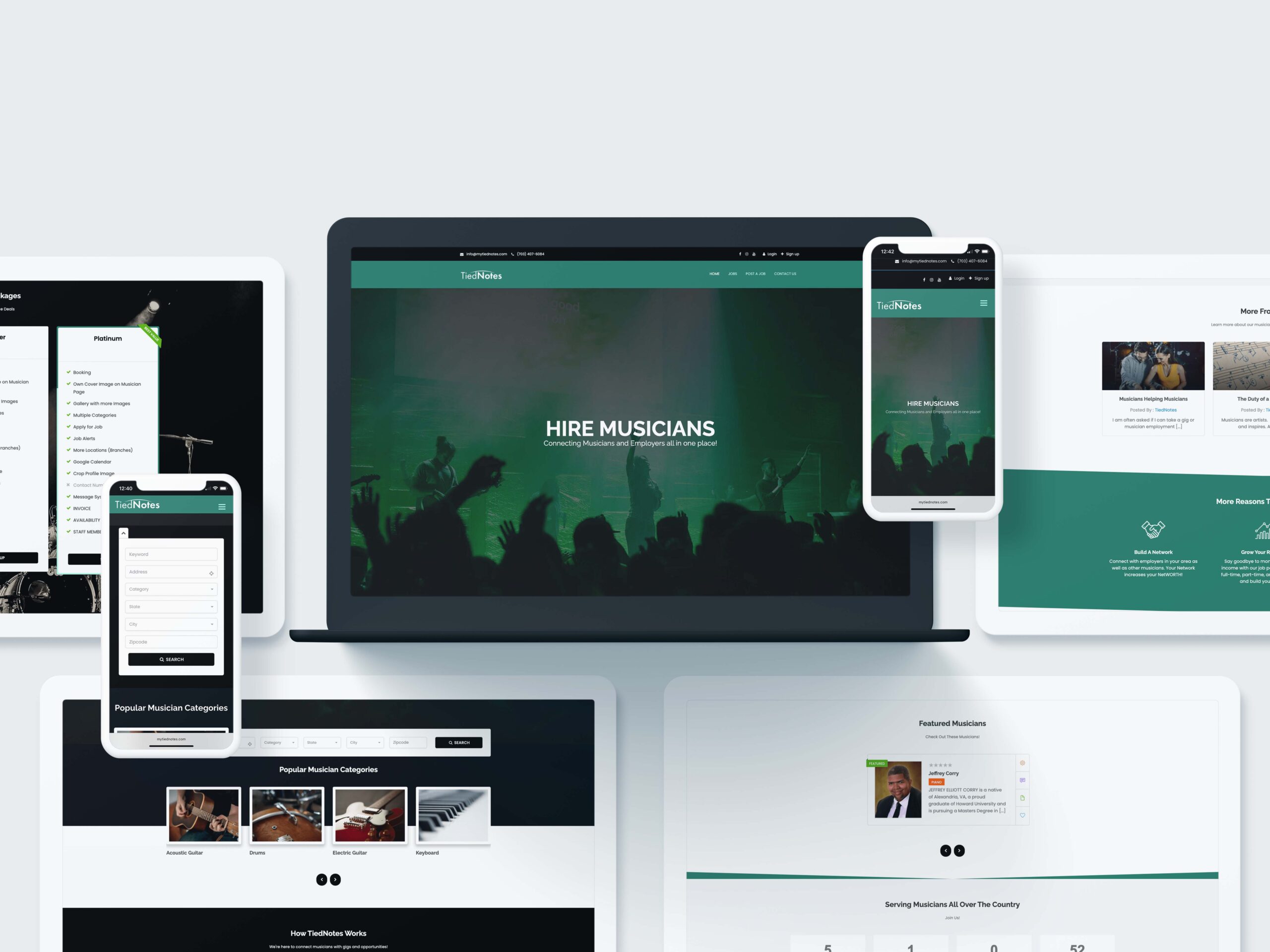 Tied Notes is a platform that was created to bridge the gap between Chrisitian musicians and employers. It allows both parties to purchase a subscription in order to create a profile, scout out talent, communicate with them, and book gigs RIGHT ON THE PLATFORM.
